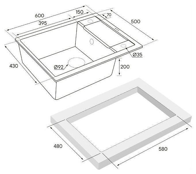 Компактный вариант мойки с крылом идеален для ограниченного кухонного пространства.Максимальный объём чаши