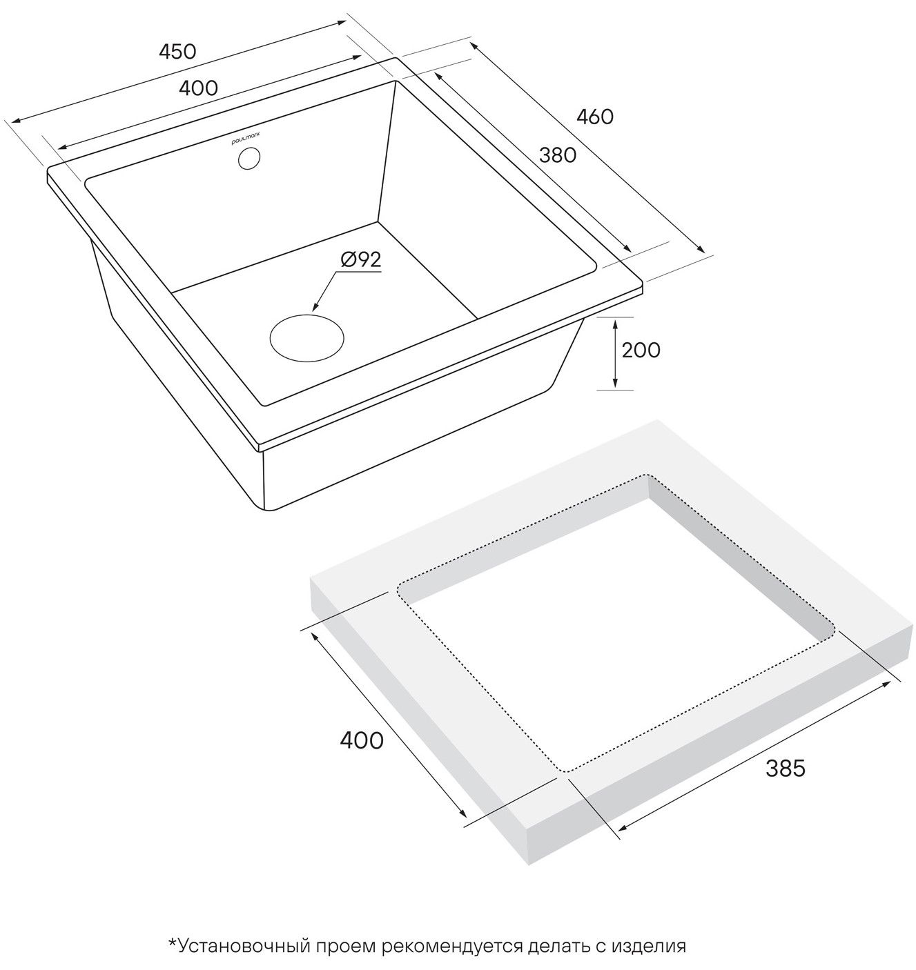 Внешние грани мойки были специально разработаны таким образом, чтобы мойка прилегала к столешнице максимально плотно, а переход края мойки к столешнице плавно и эстетично.