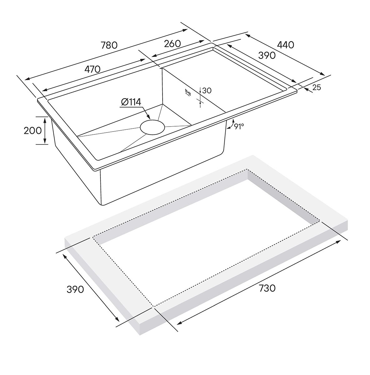 • Отверстия под смеситель:
