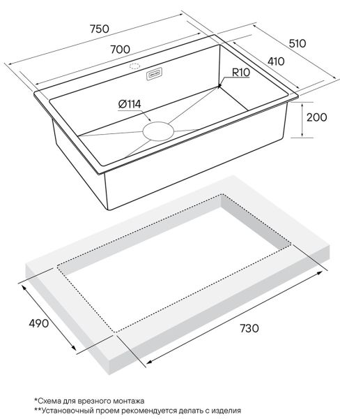 • Отверстия под смеситель: