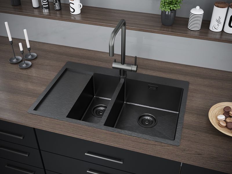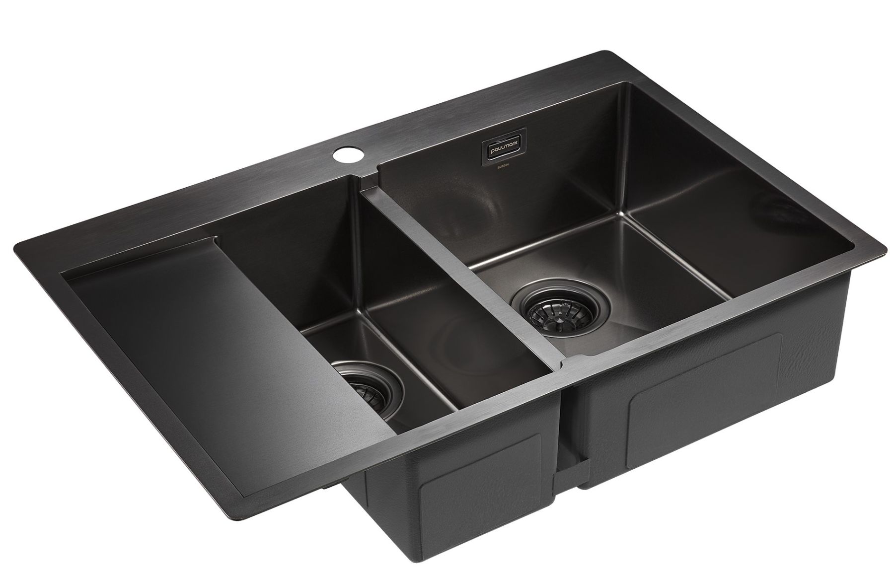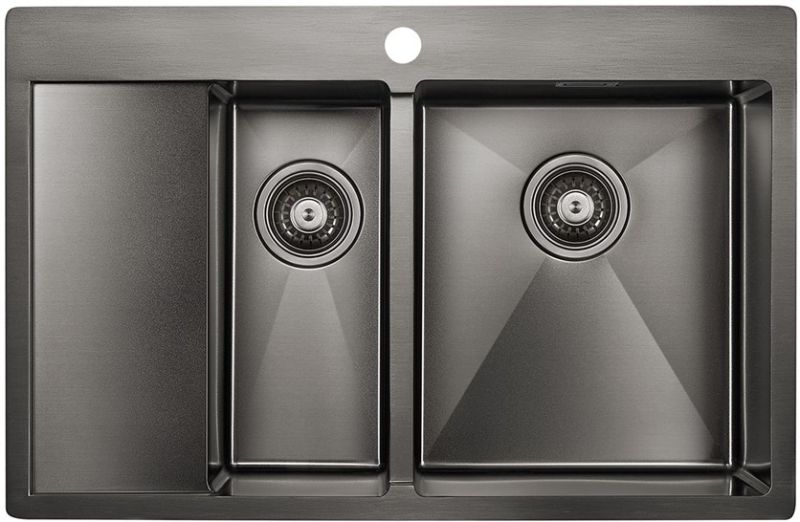 Мойка кухонная Paulmark Union PM537851-GMR правая воронёная сталь купить