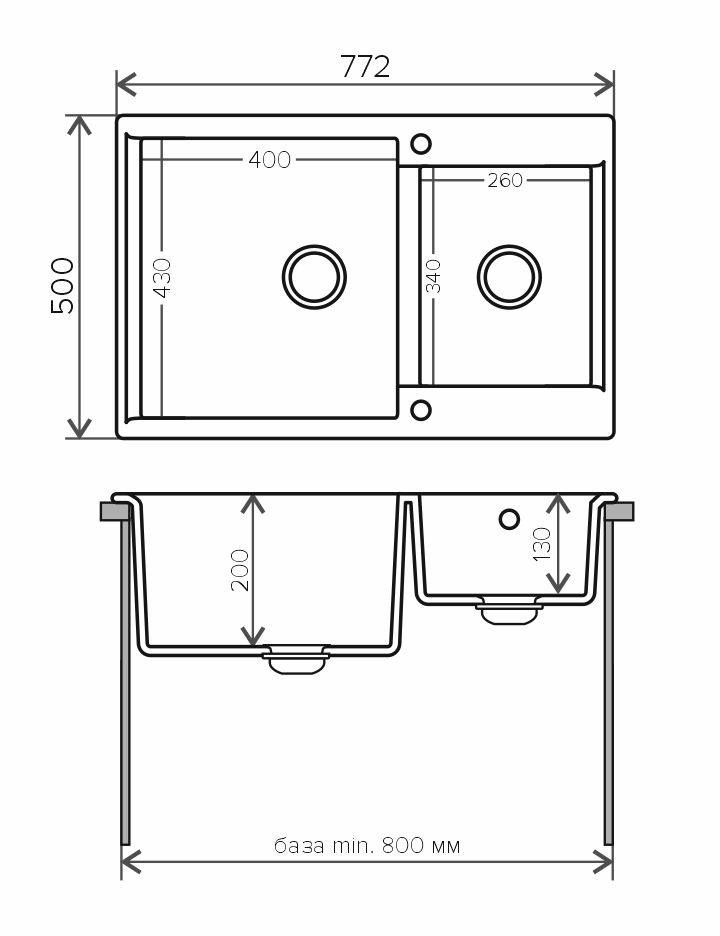 Мойка кухонная Polygran BRIG-772 чёрный 621480