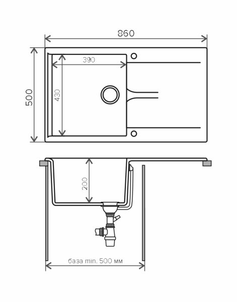 Мойка кухонная Polygran GALS-860 чёрный 408005