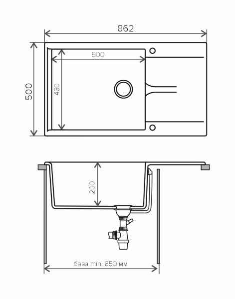 Мойка кухонная Polygran GALS-862 чёрный 444591 купить