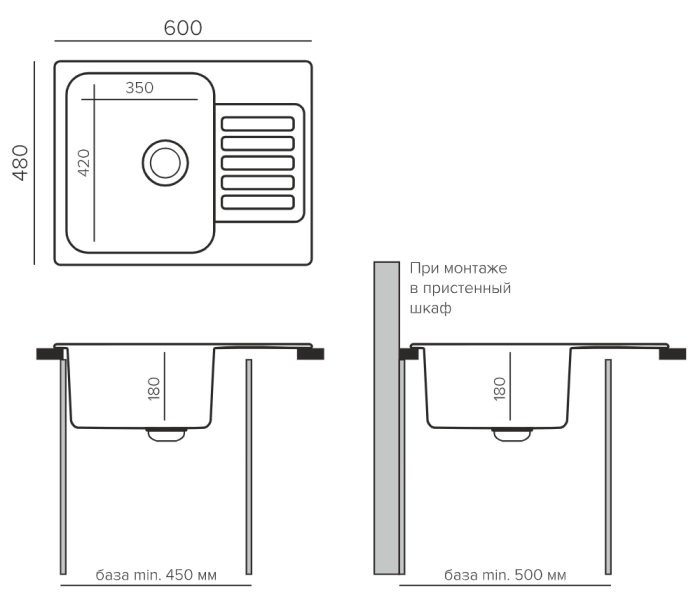 Кухонная мойка QUARTZBOND BOND-600 , обладает бархатистой поверхностью. Материал мойки - кварцевый песок, обещает долговечность использования. Установка врезная, накладная, прекрасно встанет на любую столешницу. При небольших размерах, внешний размер мойки 60х48 см, у нее вместительная чаша 35х43 см. Подходит в кухонную базу от 450 мм. Раковина не имеет отверстия под смеситель для крана, крыло оборотное, что позволяет установить ее как удобно Вам. Мойка из искусственного кварца ударопрочна, экологичная, со звукопоглощением.Мойка производится в 4 цветах (туман, лен, дым, уголь).Обратите внимание, что крепления и сифон приобретается отдельно.Гарантия 3 года. В коллекцию QuartzBond вошли проверенные годами, не теряющие своей популярности, модели кухонных моек.Размеры мойки (ШхДхГ): 480х600х190 мм.