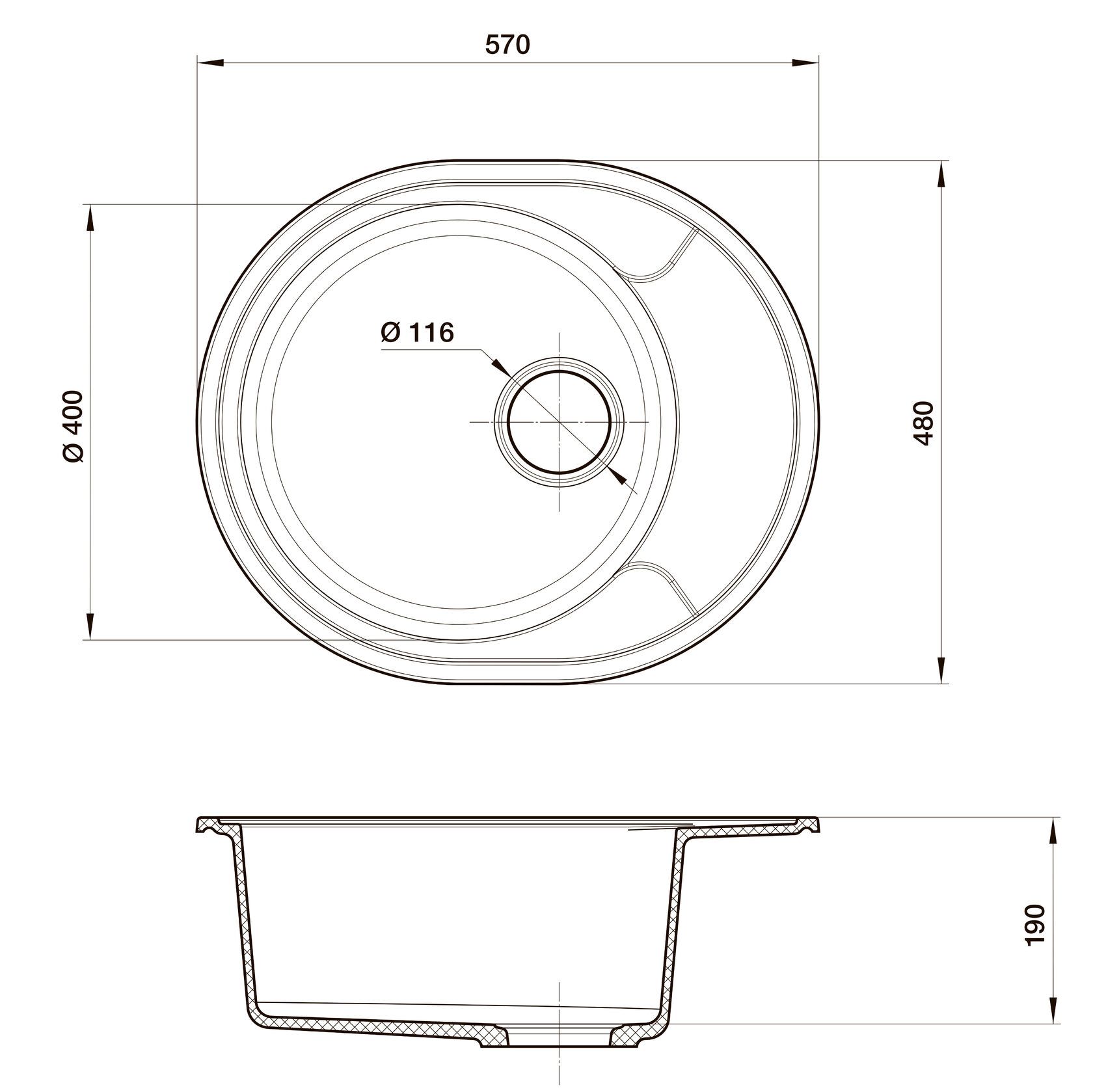Размер чаши, мм: 400x400
