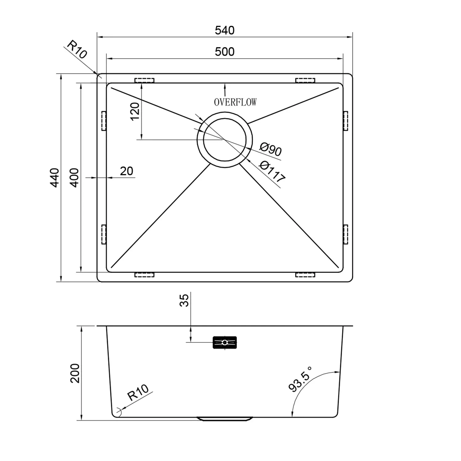 Мойка кухонная Reflexion Como 54-BL RX2054BL оружейная сталь