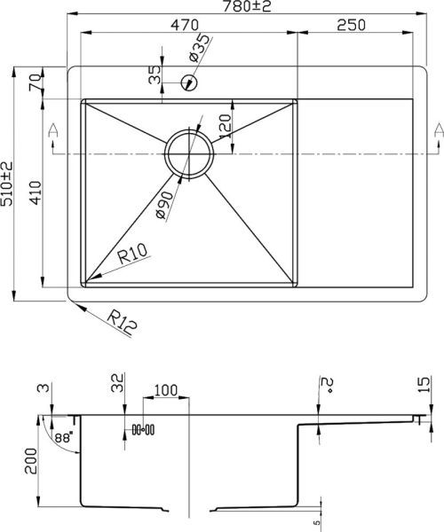 • Отверстия под смеситель: