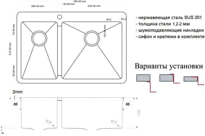Мойки кухонные серии Zorg производятся из высококачественной легированной нержавеющей стали марки SUS 304 (толщина стали 1 мм). Характерными особенностями кухонных моек данной серии являются прямые углы моечной чаши и четкие линии поверхности мойки, которые несомненно придутся по вкусу обладателям кухни в стиле хай-тек. Матовая поверхность мойки достигается благодаря применению брашинга (шлифование специальными щётками). Встроенная система крепления для аксессуаров позволит использовать всевозможные аксессуары Zorg (разделочные доски, поддоны и коландеры), превращая поверхность мойки в рабочую зону и обеспечивая дополнительное пространство на кухне.