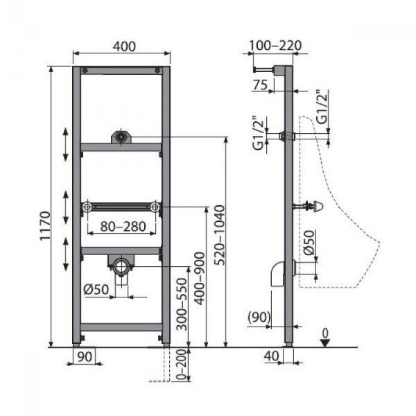 Монтажная рама AlcaPlast для писсуара A107/1200