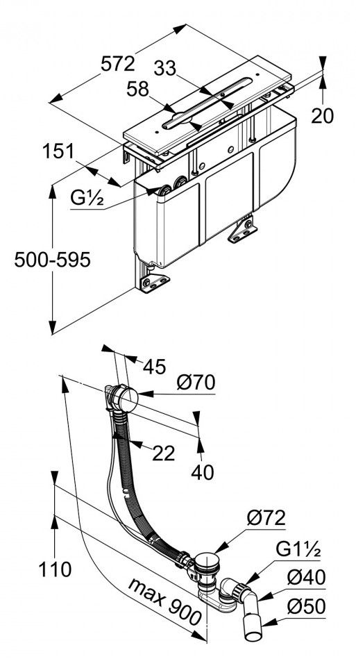 • с 2 шлангами высокого давления G 1/2 x G 1/2 x 400 мм