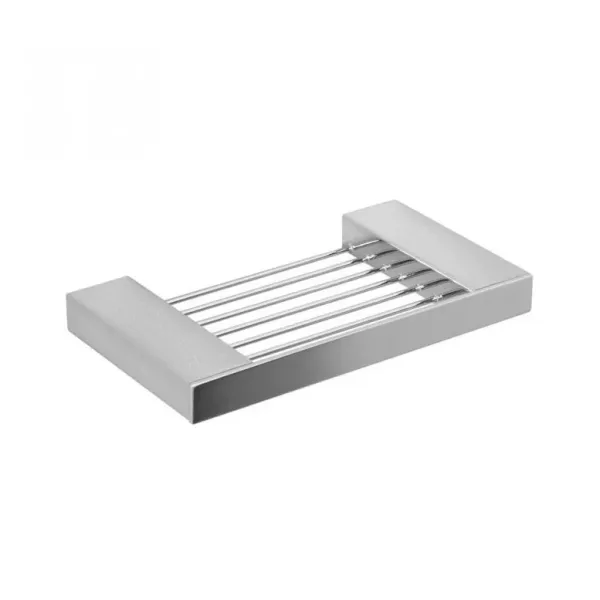 Мыльница для ванной комнаты Aquanet 5611 с решетчатым основанием, на которое непосредственно кладется мыло, продумана до мелочей при всей ее внешней простоте. Благодаря решетке в ней не застаивается вода, что позволяет экономить мыло. Изделие выполнено из латуни. Этот многокомпонетный сплав отличается прочностью и стойкостью к коррозии, что особенно важно в условиях повышенной влажности. Решетчатое основание окаймлено со всех сторон широкими металлическими бортами, так что мыло не соскользнет. А крепление мыльницы к стене простое и надежное.