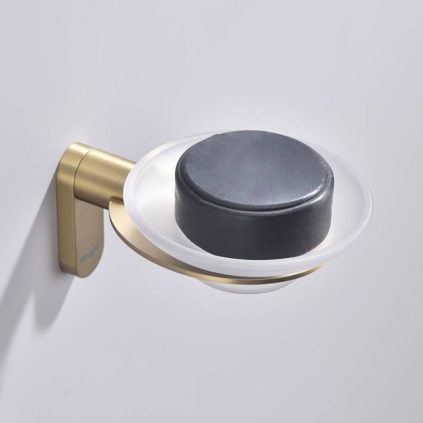 Raglo R300.02.03 Мыльница стеклянная с держателем. Форма округлая, цвет - сатиновое золото, полуматовое покрытие. Крепление в комплекте.