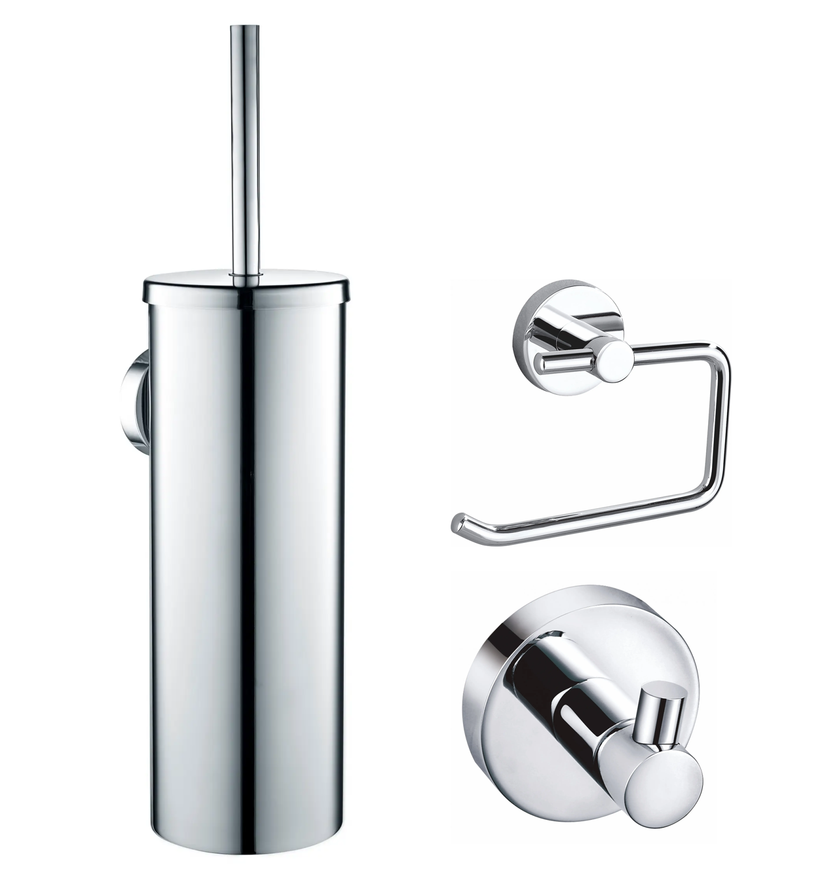 Набор аксессуаров из 3 предметов (крючок, держатель для бумаги, ершик) WONZON & WOGHAND, Хром (WW-8100-CR)