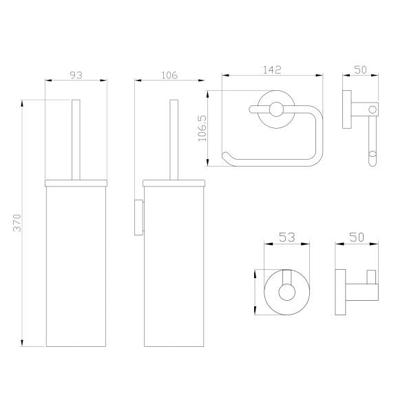 Набор аксессуаров из 3 предметов Wonzon & Woghand WW-8100-G крючок держатель для бумаги ёршик брашированное золото