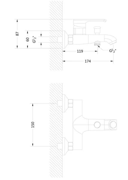 • Смеситель для ванной для ручной лейки