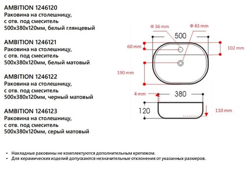 Накладная раковина Avimano Ambition 1246122 50см чёрный матовый купить