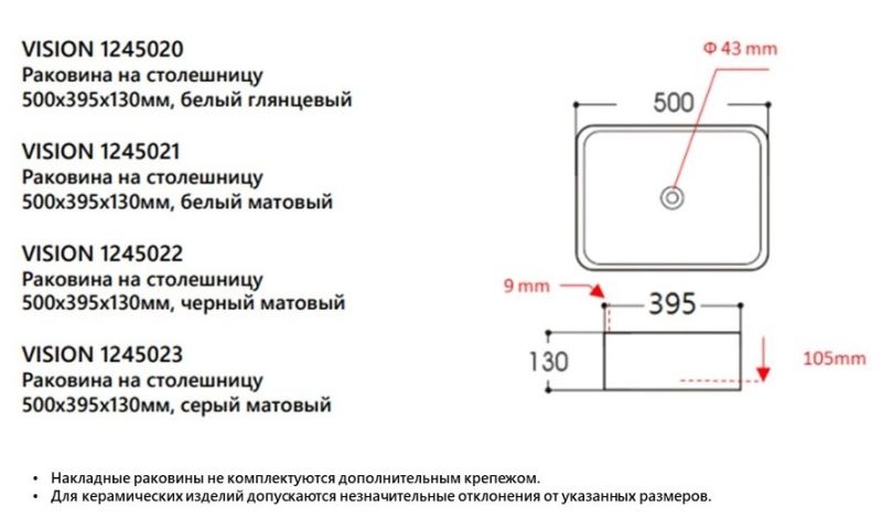 Накладная раковина Avimano Vision 1245020 50см белый глянец купить