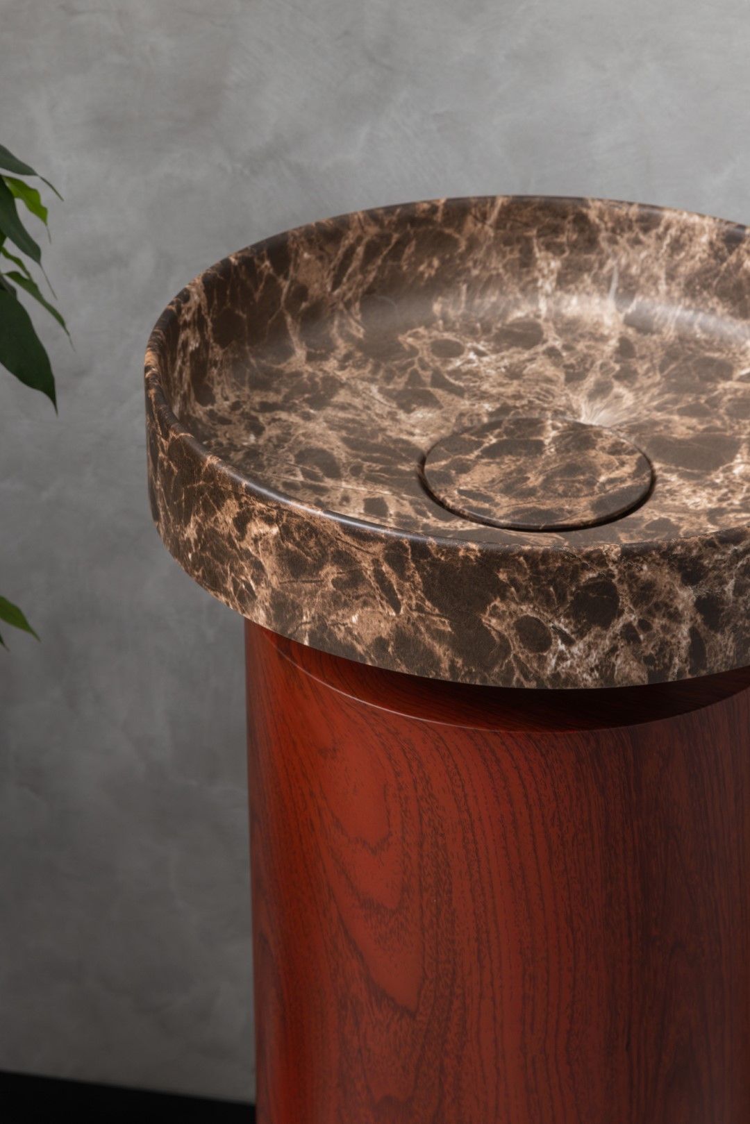 Накладная раковина с пьедесталом золото Armadi Art Sole Corian 801-ED+801-Base-Rwood Emprador/Red Wood