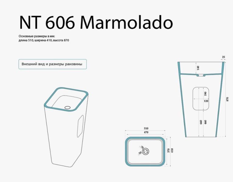 Напольная раковина NT Bagno Marmolado NT606 51см белый матовый купить