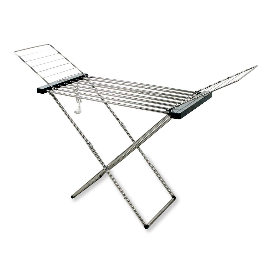 Сушилка для белья электрическая, напольная, складная. Изготовлена из нержавеющей стали.