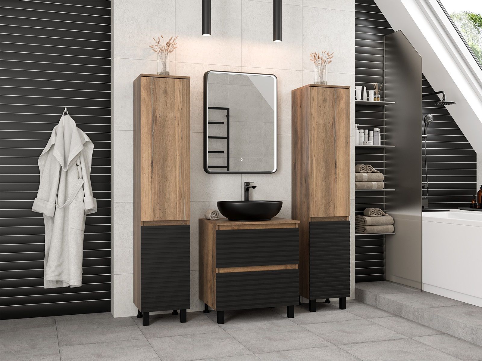 Напольная тумба под раковину – это не просто элемент мебели, но настоящее произведение искусства, которое сочетает в себе функциональность и изысканный дизайн. Изготовленная из высококачественных материалов, она гарантирует долговечность и устойчивость к воздействию влаги.Удобная система хранения позволяет размещать все необходимое для гигиенических процедур, а её продуманные размеры отлично вписываются даже в небольшие помещения. Стильные ручки и элегантные фасады придают тумбе особый шарм, а разнообразие цветовых решений позволит выбрать модель, соответствующую любому интерьеру – от классического до модерн.Мягкие линии и непринужденные формы делают тумбу неотъемлемой частью ванной, превращая её в любимое место для отдыха. Совершенное сочетание эстетики и практичности позволяет создать гармоничный и стильный интерьер, что делает напольную тумбу для ванной комнаты идеальным аксессуаром для любого дома.