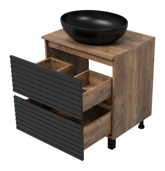 Напольная тумба под раковину Brevita Dakota DAK-07060-19/02-2Я 60см дуб Галифакс олово/чёрный