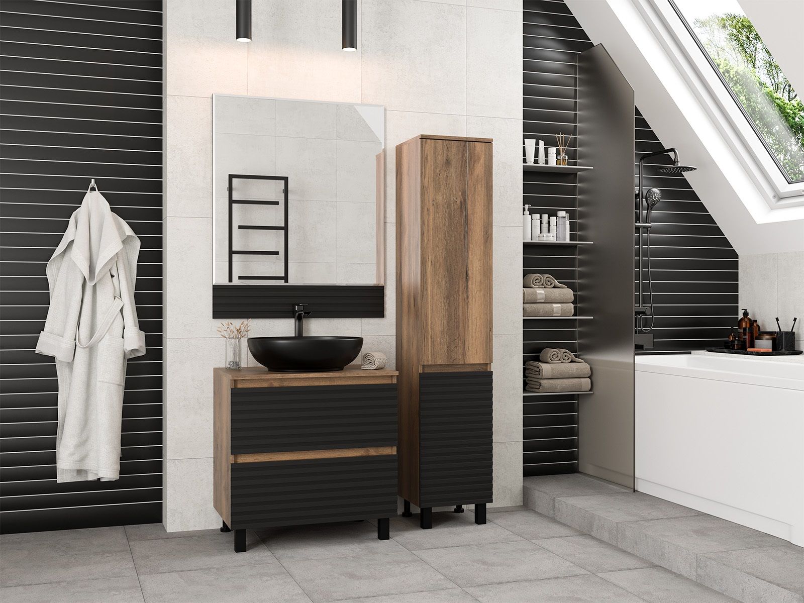 Напольная тумба под раковину Brevita Dakota DAK-07070-19/02-2Я 70см дуб Галифакс олово/чёрный