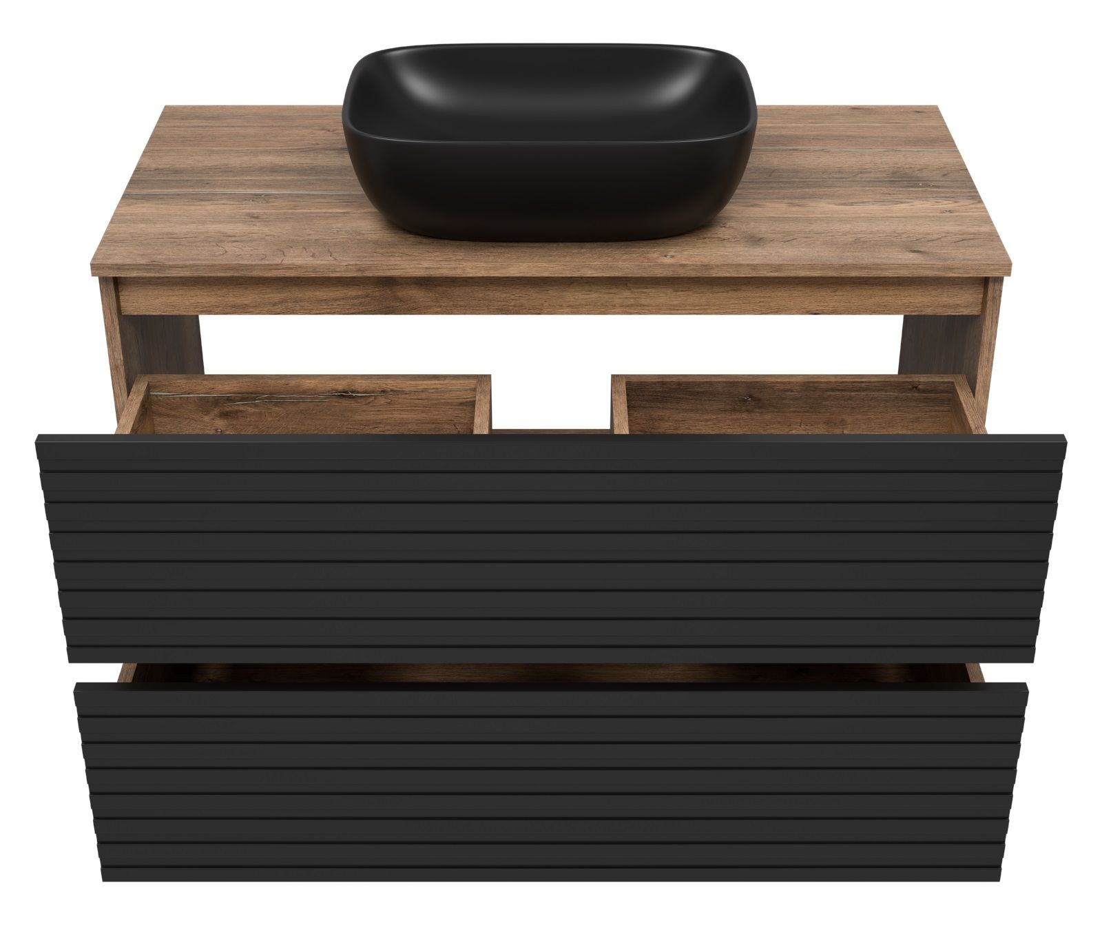 Напольная тумба под раковину Brevita Dakota DAK-07100-19/02-2Я 100см дуб Галифакс олово/чёрный