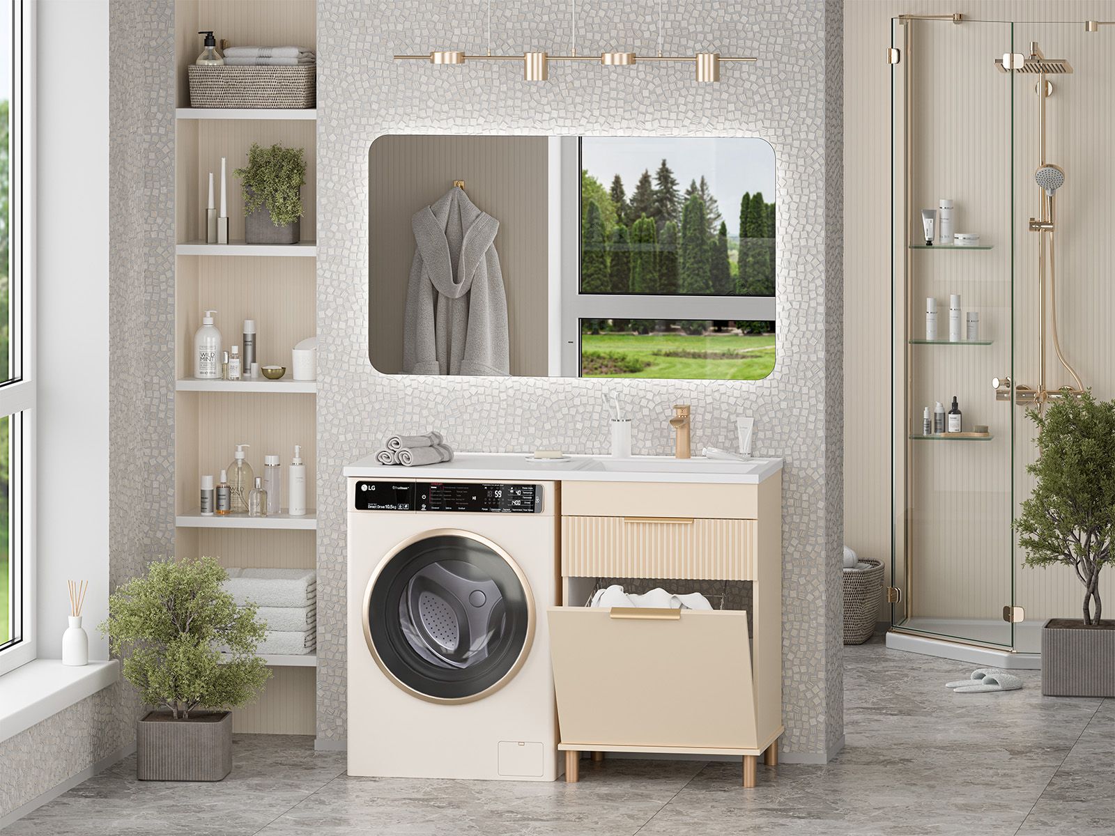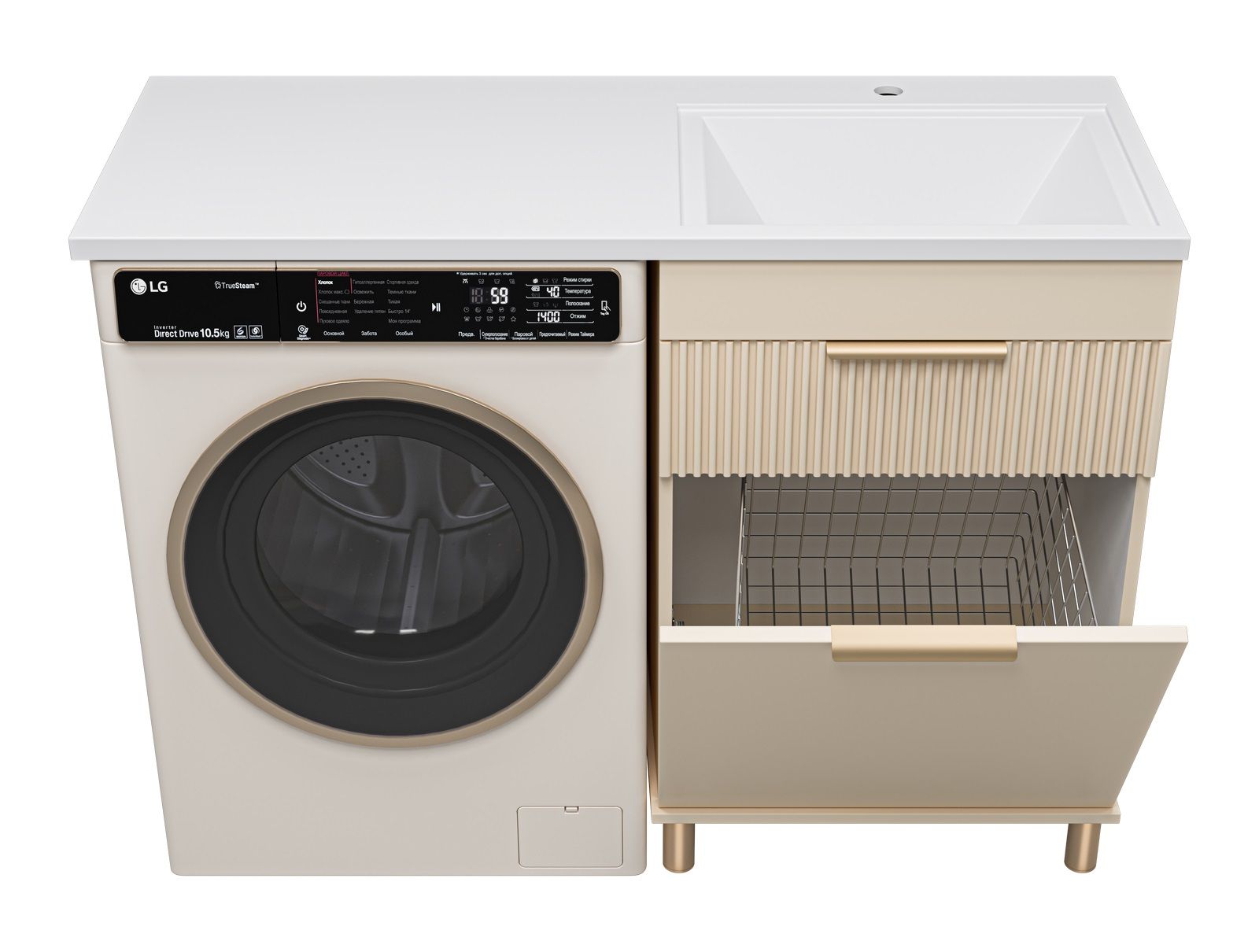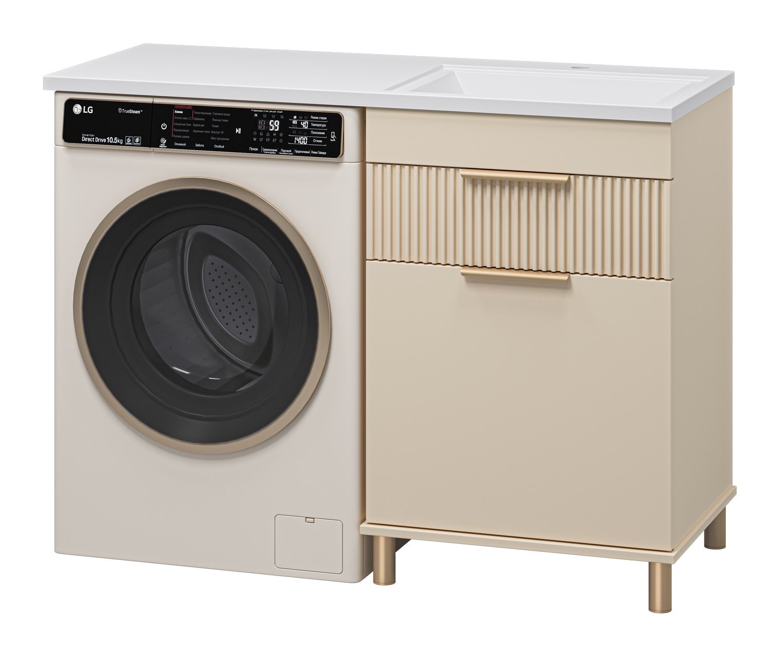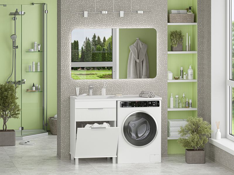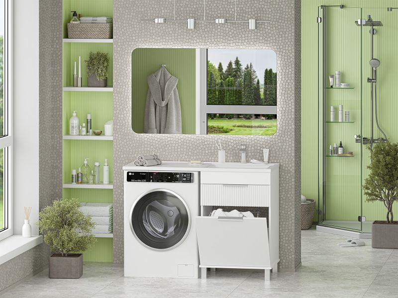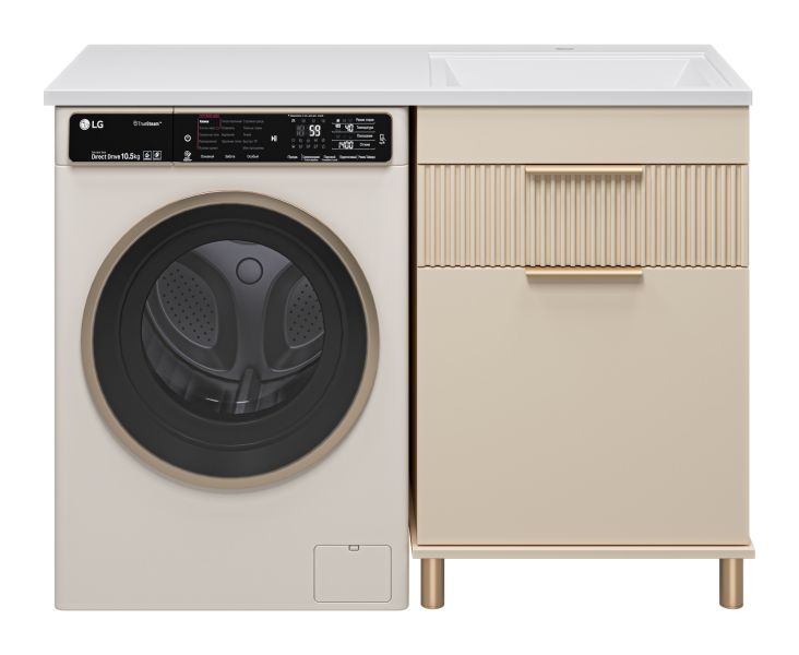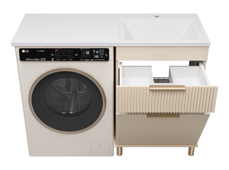 Напольная тумба под раковину Brevita Enfida 60см под стиральную машину с бельевой корзиной бежевый купить