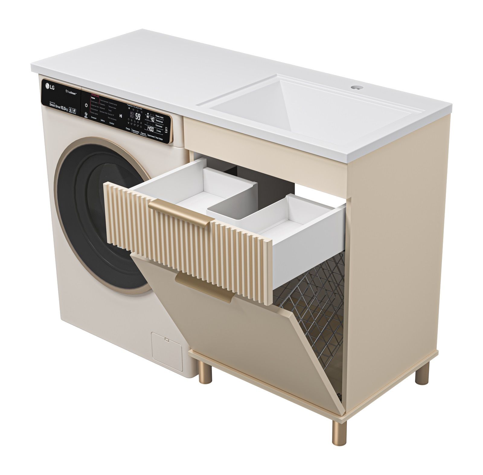 Напольная тумба под раковину Brevita Enfida 60см под стиральную машину с бельевой корзиной бежевый