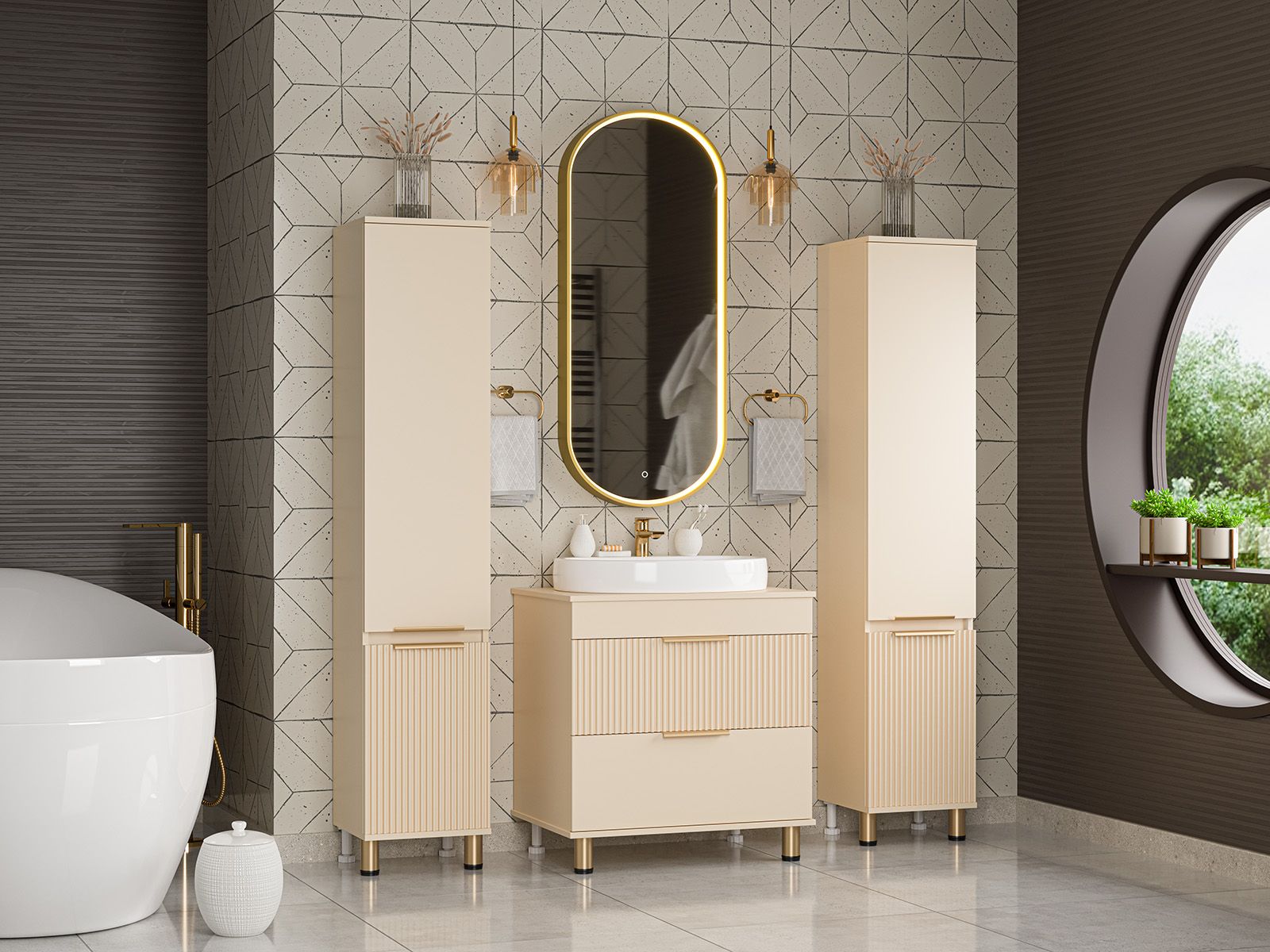 Напольная тумба под раковину – это не просто элемент мебели, но настоящее произведение искусства, которое сочетает в себе функциональность и изысканный дизайн. Изготовленная из высококачественных материалов, она гарантирует долговечность и устойчивость к воздействию влаги.Удобная система хранения позволяет размещать все необходимое для гигиенических процедур, а её продуманные размеры отлично вписываются даже в небольшие помещения. Стильные ручки и элегантные фасады придают тумбе особый шарм, а разнообразие цветовых решений позволит выбрать модель, соответствующую любому интерьеру – от классического до модерн.Мягкие линии и непринужденные формы делают тумбу неотъемлемой частью ванной, превращая её в любимое место для отдыха. Совершенное сочетание эстетики и практичности позволяет создать гармоничный и стильный интерьер, что делает напольную тумбу для ванной комнаты идеальным аксессуаром для любого дома.