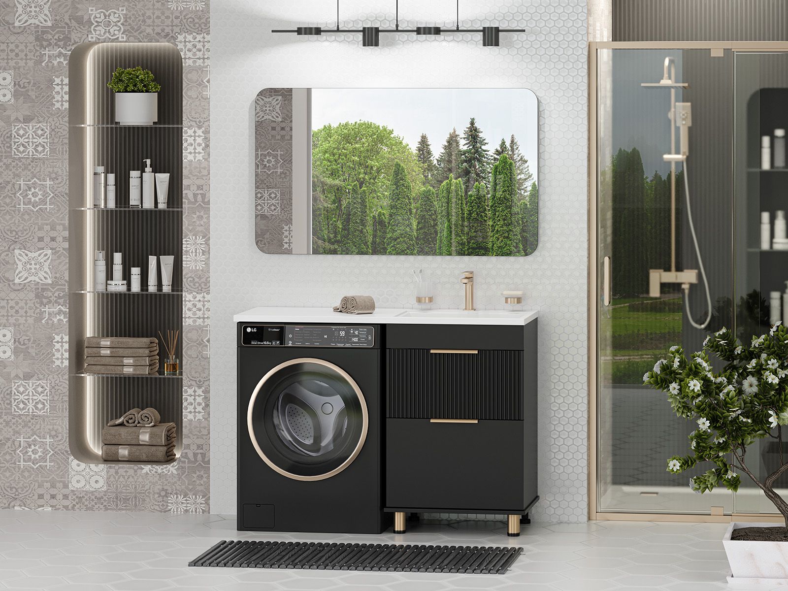 Напольная тумба под раковину Brevita Enfida ENF-07060-022Я под стиральную машину 60см чёрный
