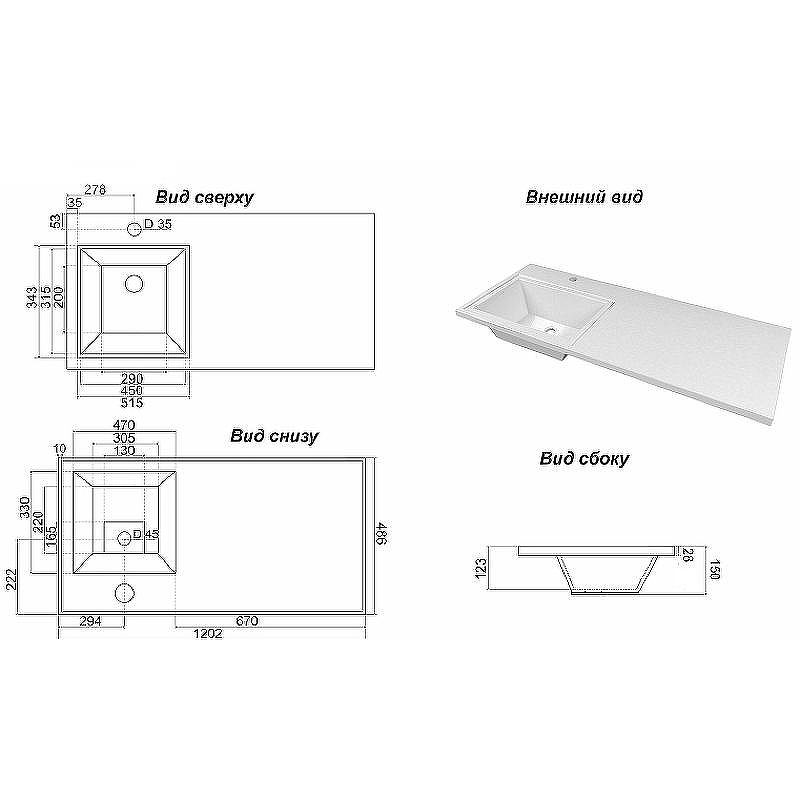 Размер (ШхВхГ): 1200х160х480 мм.