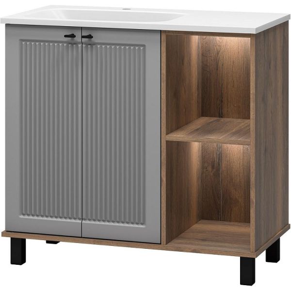 Напольная тумба под раковину Brevita Lumus 90 L УТ000025489 Серая матовая Дуб Галифакс олово Подробнее