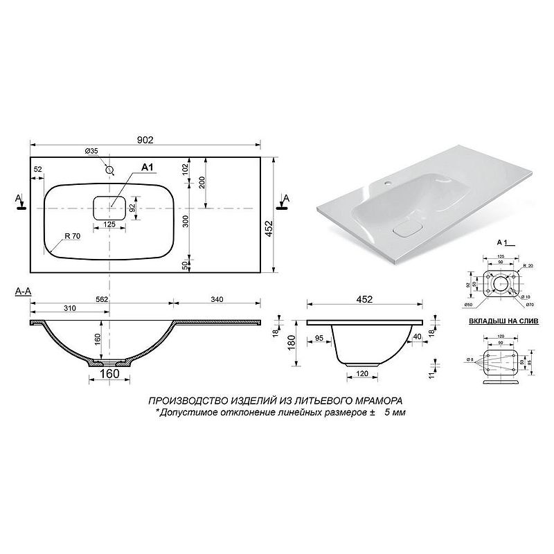 Материал: литьевой мрамор.