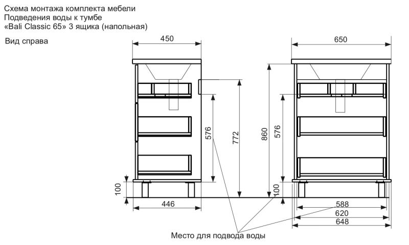 Напольная тумба под раковину Эстет Bali Classic ФР-00002143 65см три ящика белый