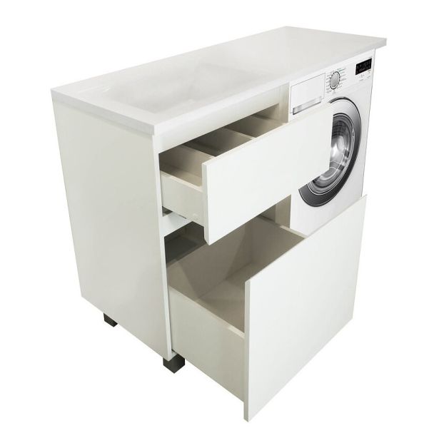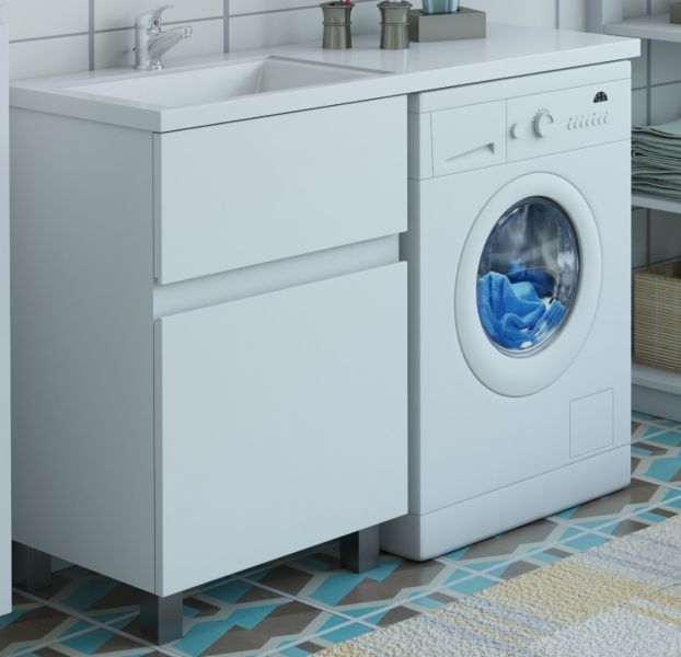 Коллекция мебели для ванной комнаты Dallas Luxe покоряет своей удивительной простой и функциональностью. Стильная лаконичная тумба, укомплектована раковиной из литьевого мрамора с удобной чашей. Стиральная машина устанавливается под столешницей, за счет чего экономит место в ванной комнате. В тумбе имеются два ящика. Нижний ящик тумбы – широкий и вместительный – предназначен для крупных предметов, а в верхнем имеется специальная организация пространства, позволяющая хранить мелкие вещи.