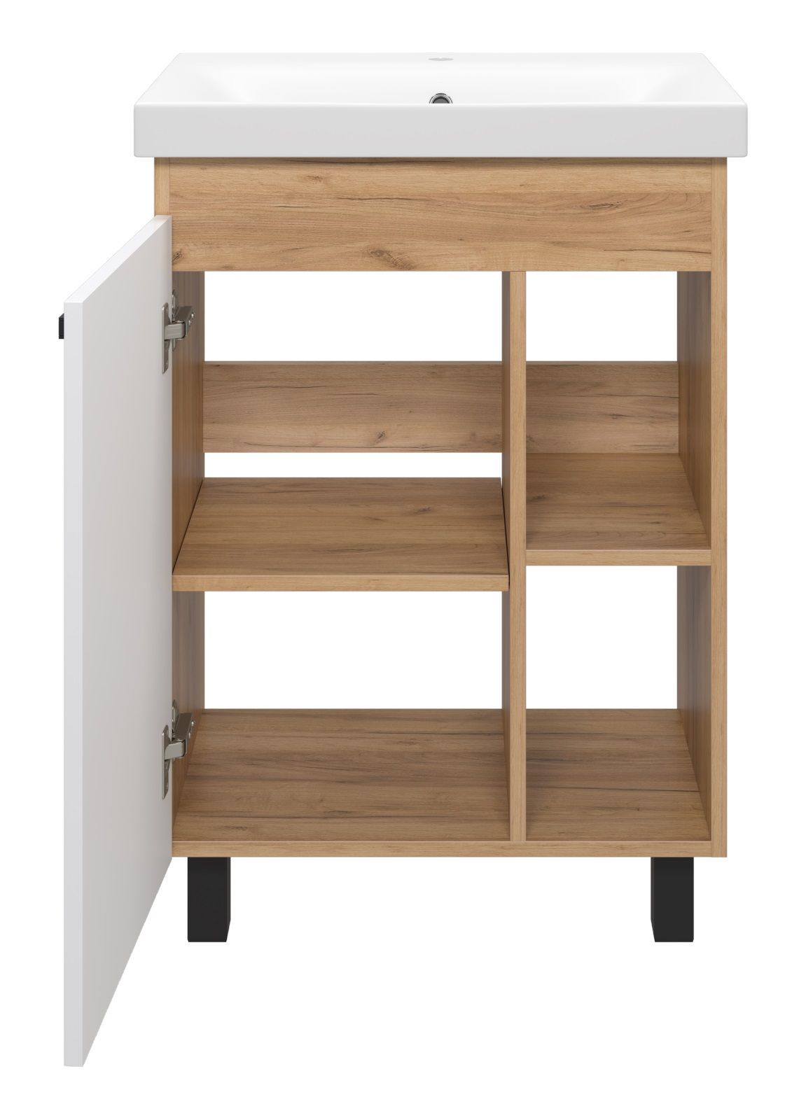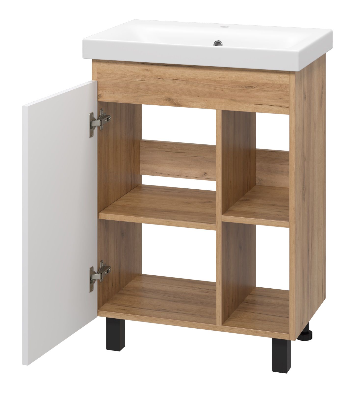 Напольная тумба под раковину Misty Крафт 60см белый/дуб крафт золотой