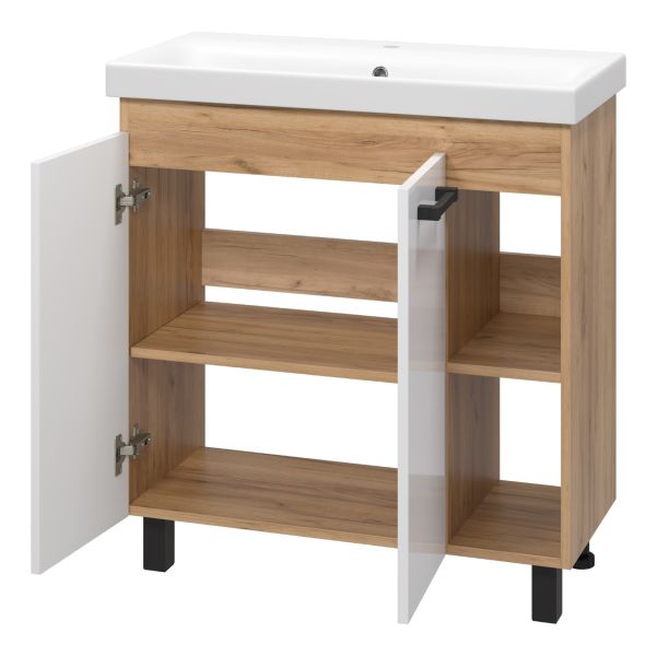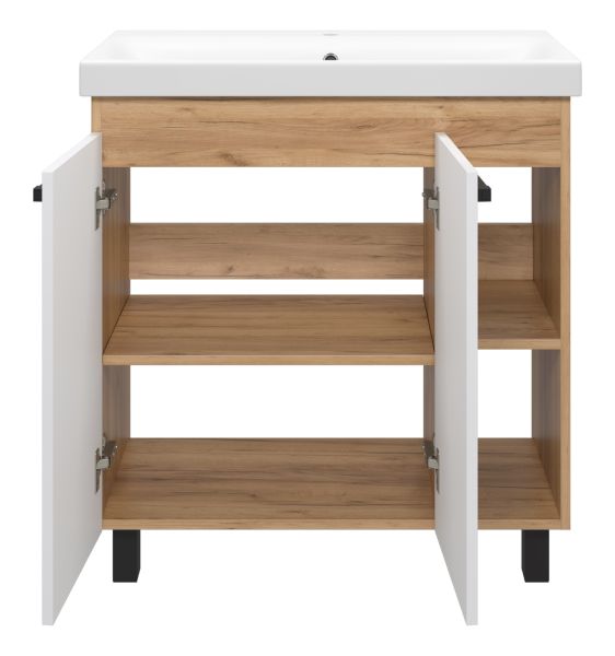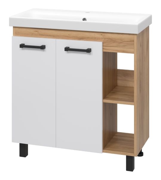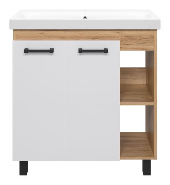 Напольная тумба под раковину Misty Крафт 80см белый/дуб крафт золотой