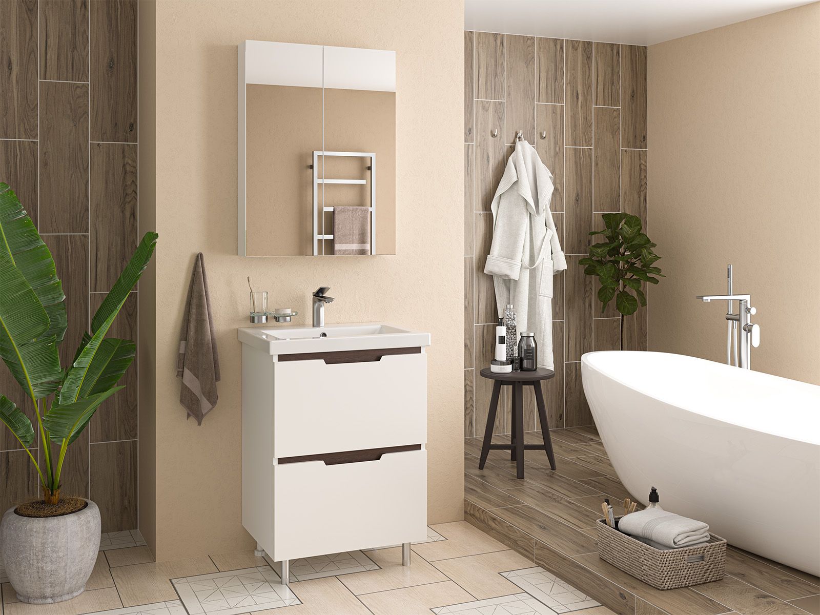 Напольная тумба под раковину – это не просто элемент мебели, но настоящее произведение искусства, которое сочетает в себе функциональность и изысканный дизайн. Изготовленная из высококачественных материалов, она гарантирует долговечность и устойчивость к воздействию влаги.Удобная система хранения позволяет размещать все необходимое для гигиенических процедур, а её продуманные размеры отлично вписываются даже в небольшие помещения. Стильные ручки и элегантные фасады придают тумбе особый шарм, а разнообразие цветовых решений позволит выбрать модель, соответствующую любому интерьеру – от классического до модерн.Мягкие линии и непринужденные формы делают тумбу неотъемлемой частью ванной, превращая её в любимое место для отдыха. Совершенное сочетание эстетики и практичности позволяет создать гармоничный и стильный интерьер, что делает напольную тумбу для ванной комнаты идеальным аксессуаром для любого дома.
