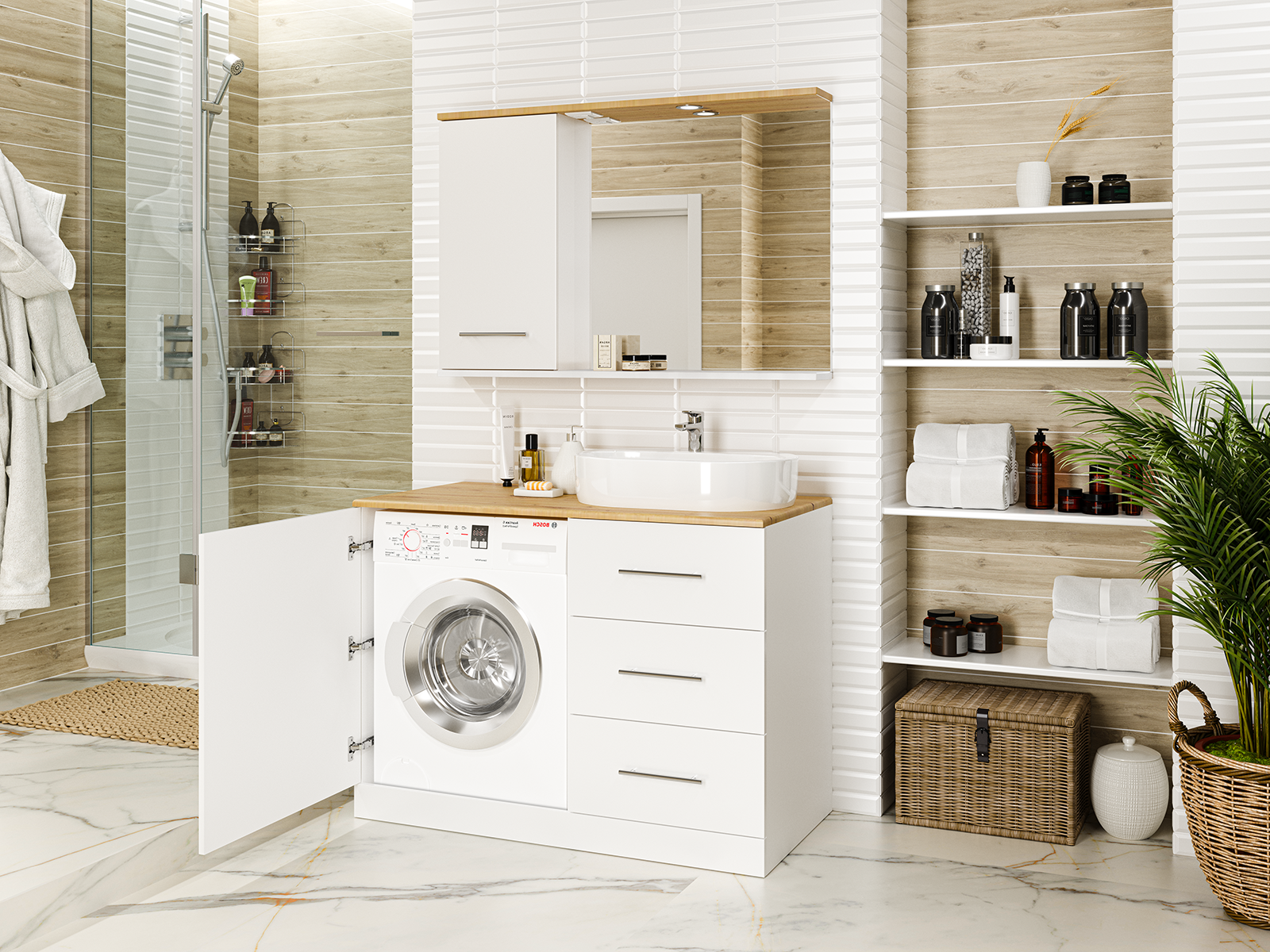 Напольная тумба под раковину – это не просто элемент мебели, но настоящее произведение искусства, которое сочетает в себе функциональность и изысканный дизайн. Изготовленная из высококачественных материалов, она гарантирует долговечность и устойчивость к воздействию влаги.Удобная система хранения позволяет размещать все необходимое для гигиенических процедур, а её продуманные размеры отлично вписываются даже в небольшие помещения. Стильные ручки и элегантные фасады придают тумбе особый шарм, а разнообразие цветовых решений позволит выбрать модель, соответствующую любому интерьеру – от классического до модерн.Мягкие линии и непринужденные формы делают тумбу неотъемлемой частью ванной, превращая её в любимое место для отдыха. Совершенное сочетание эстетики и практичности позволяет создать гармоничный и стильный интерьер, что делает напольную тумбу для ванной комнаты идеальным аксессуаром для любого дома.