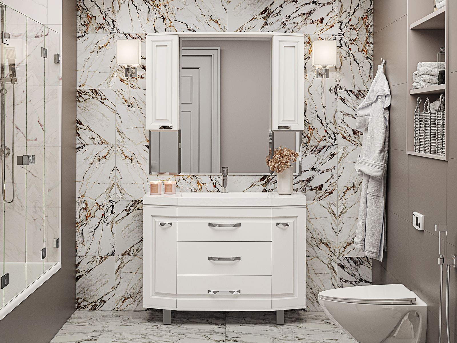Напольная тумба под раковину – это не просто элемент мебели, но настоящее произведение искусства, которое сочетает в себе функциональность и изысканный дизайн. Изготовленная из высококачественных материалов, она гарантирует долговечность и устойчивость к воздействию влаги.Удобная система хранения позволяет размещать все необходимое для гигиенических процедур, а её продуманные размеры отлично вписываются даже в небольшие помещения. Стильные ручки и элегантные фасады придают тумбе особый шарм, а разнообразие цветовых решений позволит выбрать модель, соответствующую любому интерьеру – от классического до модерн.Мягкие линии и непринужденные формы делают тумбу неотъемлемой частью ванной, превращая её в любимое место для отдыха. Совершенное сочетание эстетики и практичности позволяет создать гармоничный и стильный интерьер, что делает напольную тумбу для ванной комнаты идеальным аксессуаром для любого дома