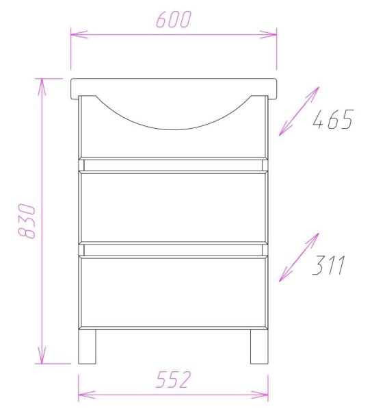 Размеры тумбы без учета раковины и ножек 55x31x68 cм.