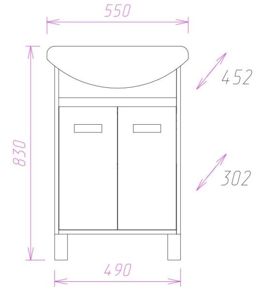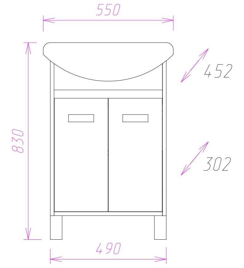 Размеры тумбы без учета раковины и ножек: 49x30x68 см.