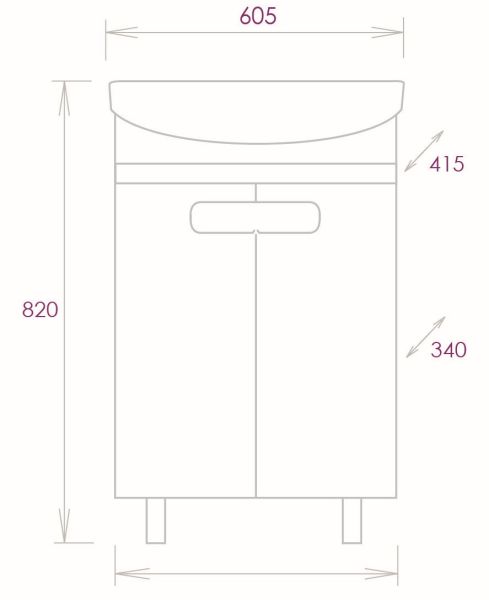 Размеры тумбы без учета раковины и ножек 55x34x68 cм.