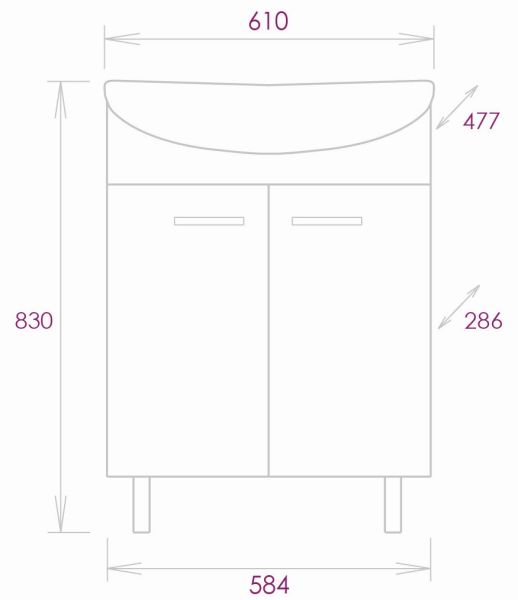 Размеры тумбы без учета раковины и ножек: 58х29х68 см.