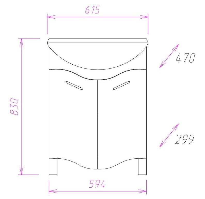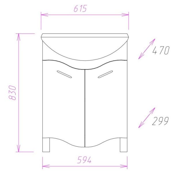 Размеры тумбы без учета раковины и ножек 59х30х75 см.