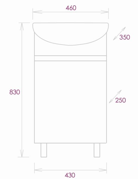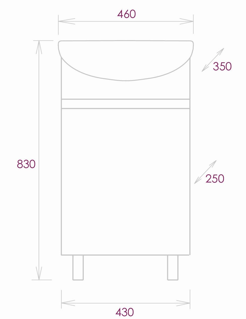 Размеры тумбы без учета раковины и ножек 43х25х68см.
