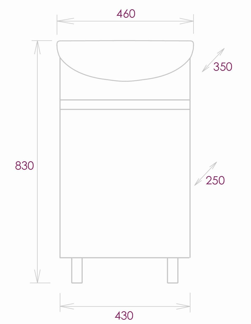 Размеры тумбы без учета раковины и ножек 43х25х68см.